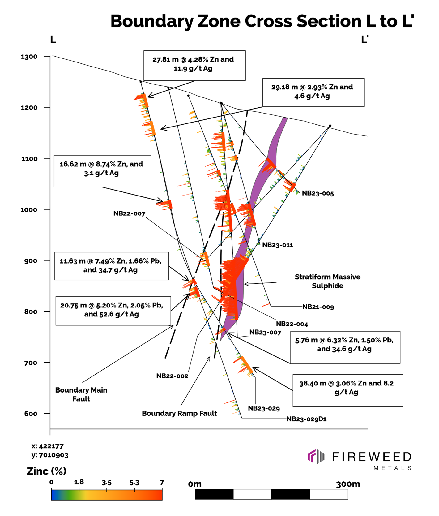 Fireweed Drills Best Intersection to Date at Boundary Zone Comprising 143.95 m at 14.45% Zinc, 1.15% Lead, and 60.0 g/t Silver for a True Width of 50 m