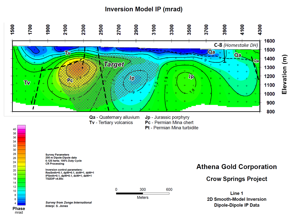 John Power, Athena’s President & CEO commented, “We are pleased with our results from our recent IP survey at Crow Springs as we prepare drill ready targets having significant upside.”