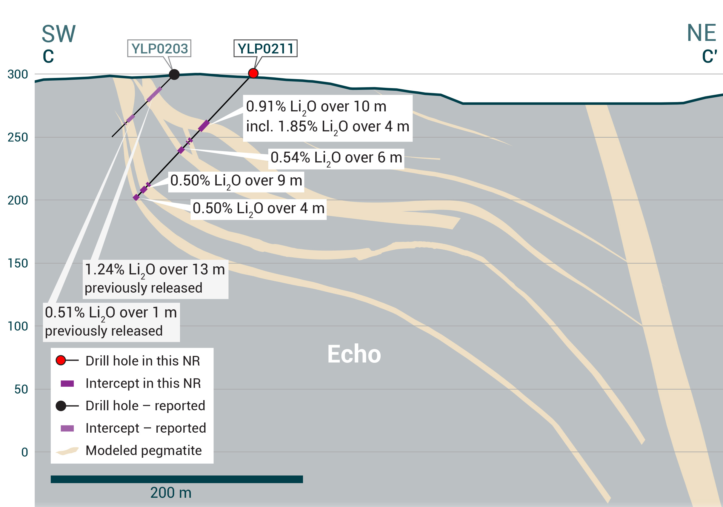 - YLP-0211: 10 m at 0.91% Li2O, (Echo)