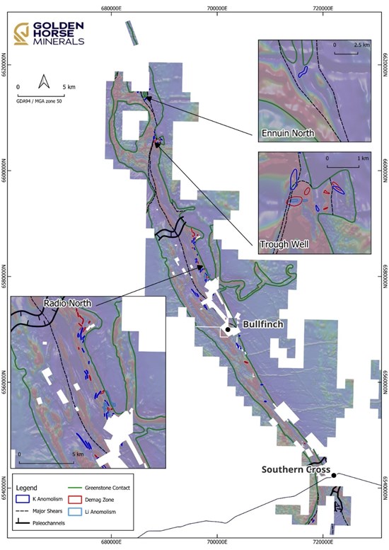 The review identified clusters of targets around GHM’s three initial targets (Radio North, Trough Well and Ennuin North) but also additional new areas (Figure 4). The new areas include one 4km west of the Radio North prospect and another immediately south of Bullfinch. These areas will be prioritised and reviewed as part of our ongoing lithium exploration plan.