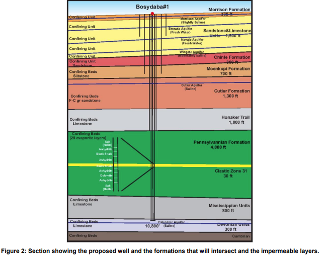 The spent brine will be pumped via the injection wells into the Paradox Reservoirs, at shallower horizons into the most permeable rock formations reducing the required pumping pressure.