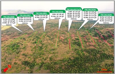 - Grades in trenches further corroborate or improve upon intersections encountered by drilling in the underlying fresh rock, while higher-grade zones within trenches, such as TRC24LU001 (39.6m at 5.41g/t PGM+Au) also validate or surpass the high-grade intersections encountered by prior drilling.