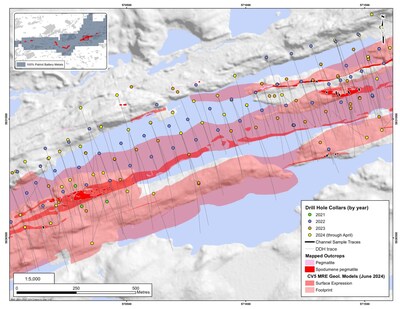 1 Shaakichiuwaanaan (CV5 & CV13) Mineral Resource Estimate (80.1 Mt at 1.44% Li2O and 163 ppm Ta2O5 Indicated, and 62.5 Mt at 1.31% Li2O and 147 ppm Ta2O5 ppm Inferred) is reported at a cut-off grade of 0.40% Li2O (open-pit), 0.60% Li2O (underground CV5), and 0.80% Li2O (underground CV13) with an Effective Date of June 27, 2024 (through drill hole CV24-526). Mineral resources are not mineral reserves as they do not have demonstrated economic viability.