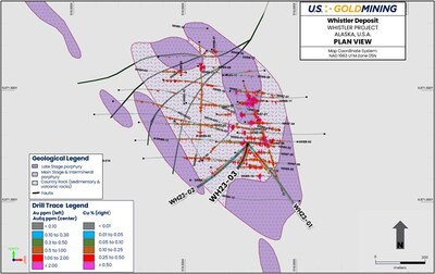View original content to download multimedia:https://www.prnewswire.com/news-releases/us-goldmining-intersects-652-5-meters-at-1-00-gt-gold-equivalent-from-near-surface-confirming-continuity-of-high-grade-core-at-the-whistler-gold-copper-deposit-alaska-302262123.html