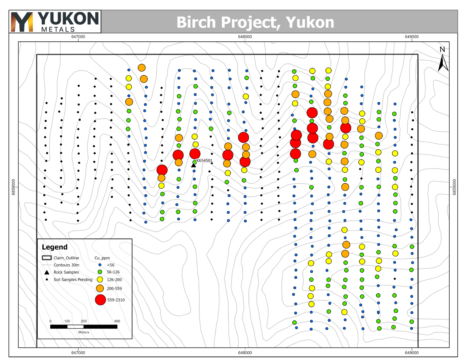 Yukon Metals Announces Positive Results of up to 14.1 g/t gold and 4,260 ppm copper from Surface Rock Chip and Soils Sampling up to 0.99 g/t gold at its Birch Property