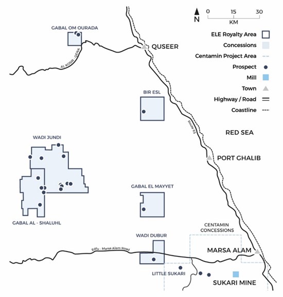 The licences cover six project areas targeting orogenic gold, VMS base metal deposits and intrusion-related gold systems (“IRGS“). In2Metals are currently undertaking a comprehensive exploration campaign within the royalty areas, including on the highly prospective Wadi Dubur licence 40km west of the world-class ~15 million ounce, ~450,000 ounce per annum Sukari Gold Mine currently operated by Centamin Plc, under takeover offer from AngloGold Ashanti Plc.