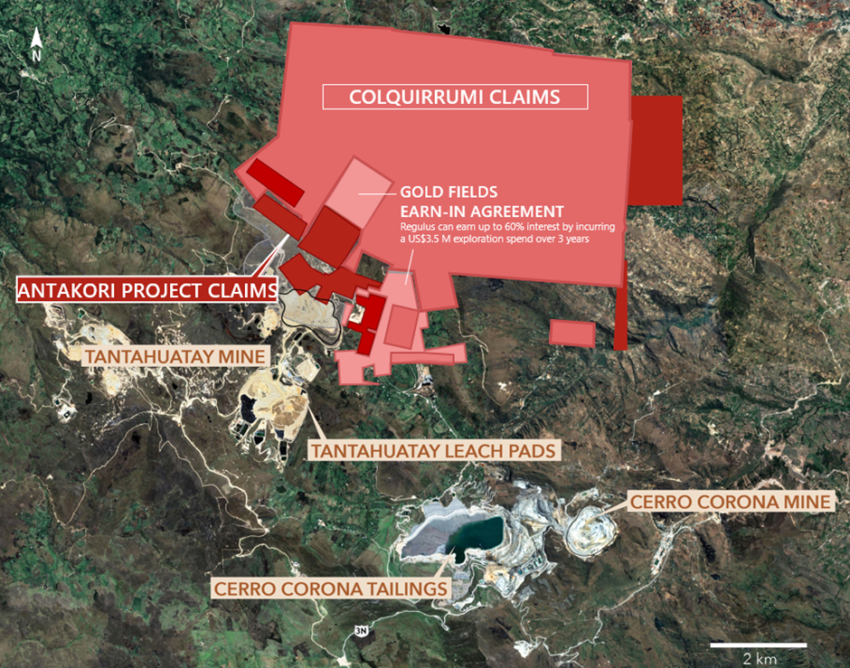 John Black, Chief Executive Officer of Regulus, commented: “This agreement consolidates a large portion of land that we know to be mineralized. There is also significant strategic value given that any large mining operation in the district would need to incorporate the Colquirrumi claims to expand resources and layback an open pit. By acquiring the remaining 30% of this claims package, we have grown our 100% owned claims package substantially.”