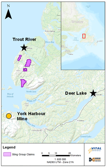 The Sting Copper Project covers approximately 12,700 hectares and hosts multiple historic Newfoundland and Labrador Government documented mineral occurrences and is located within a 50 km corridor known for significant volcanogenic massive sulfide (VMS), copper quartz vein lode and low sulphation epithermal gold showings. The Vent Copper-Gold project covers 1,562 hectares in British Columbia. Vital continues to evaluate value-add assets to bolster its project portfolio.