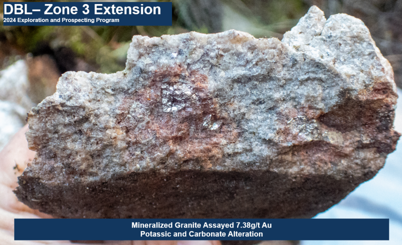 Figure 1: DBL – Zone 3 Extension Prospecting program rock sample from 900m south southwest of the 2024 drill program at Zone 3