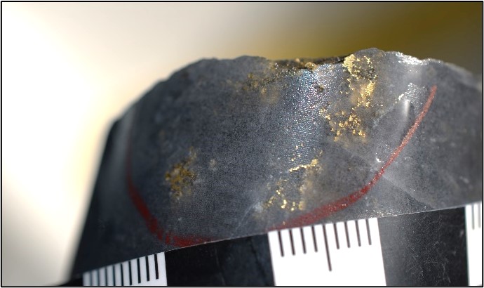 Figure 1: Visible Gold in Drill Hole OB-24-347