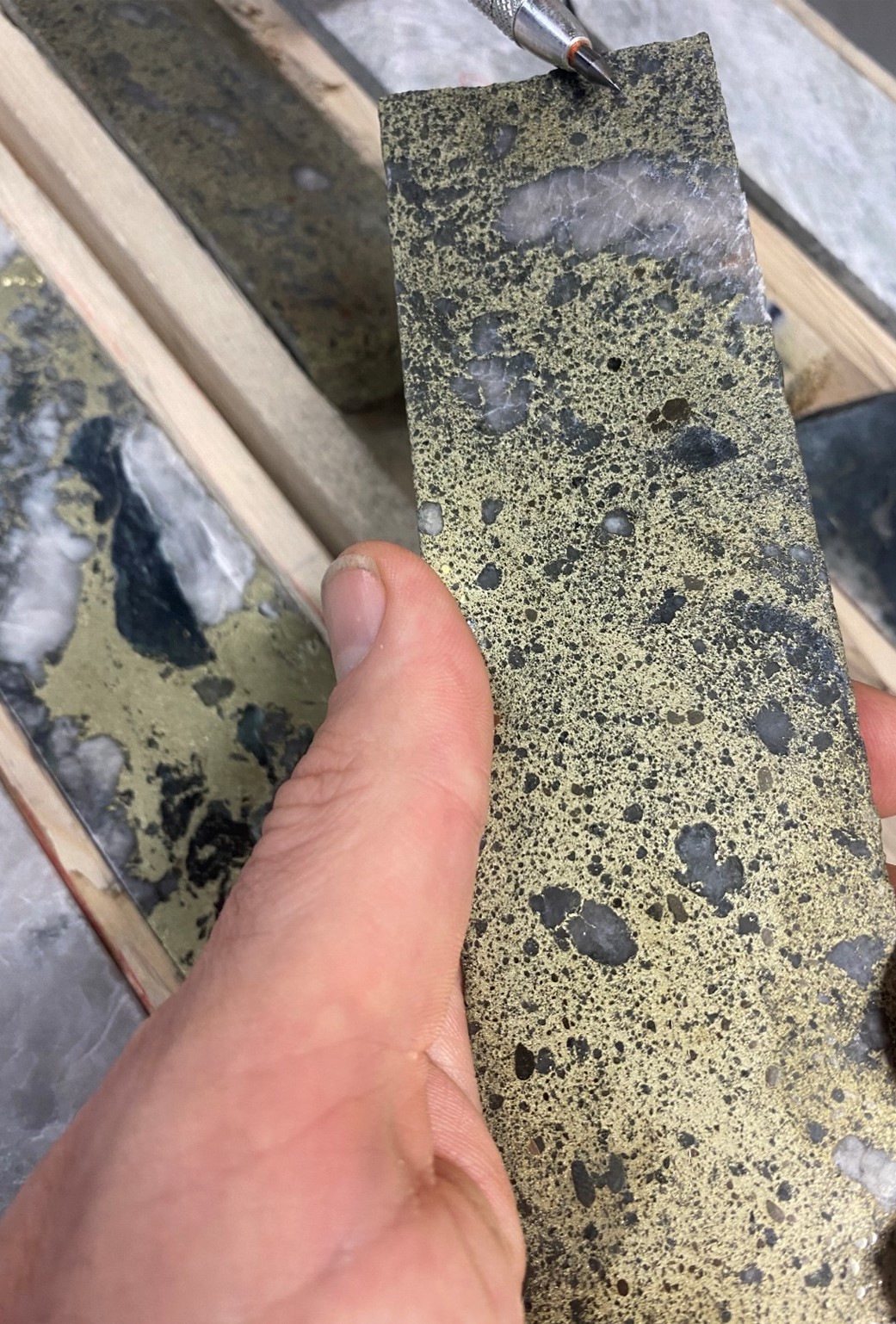 Image 1: High grade drill core from CB-24-100 intersecting 7.3m @ @ 4.2% Cu, 0.3g/t Au & 16.6g/t Ag.