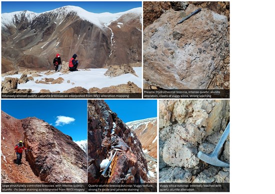 Initial positive reports from the field team confirm that the WV3 alteration processing has accurately mapped the presence of significant areas of advanced argillic alteration associated in the field with previously unsampled outcrops of intense quartz-alunite altered breccia and large structurally controlled breccias and vuggy silica zones (Figure 3).