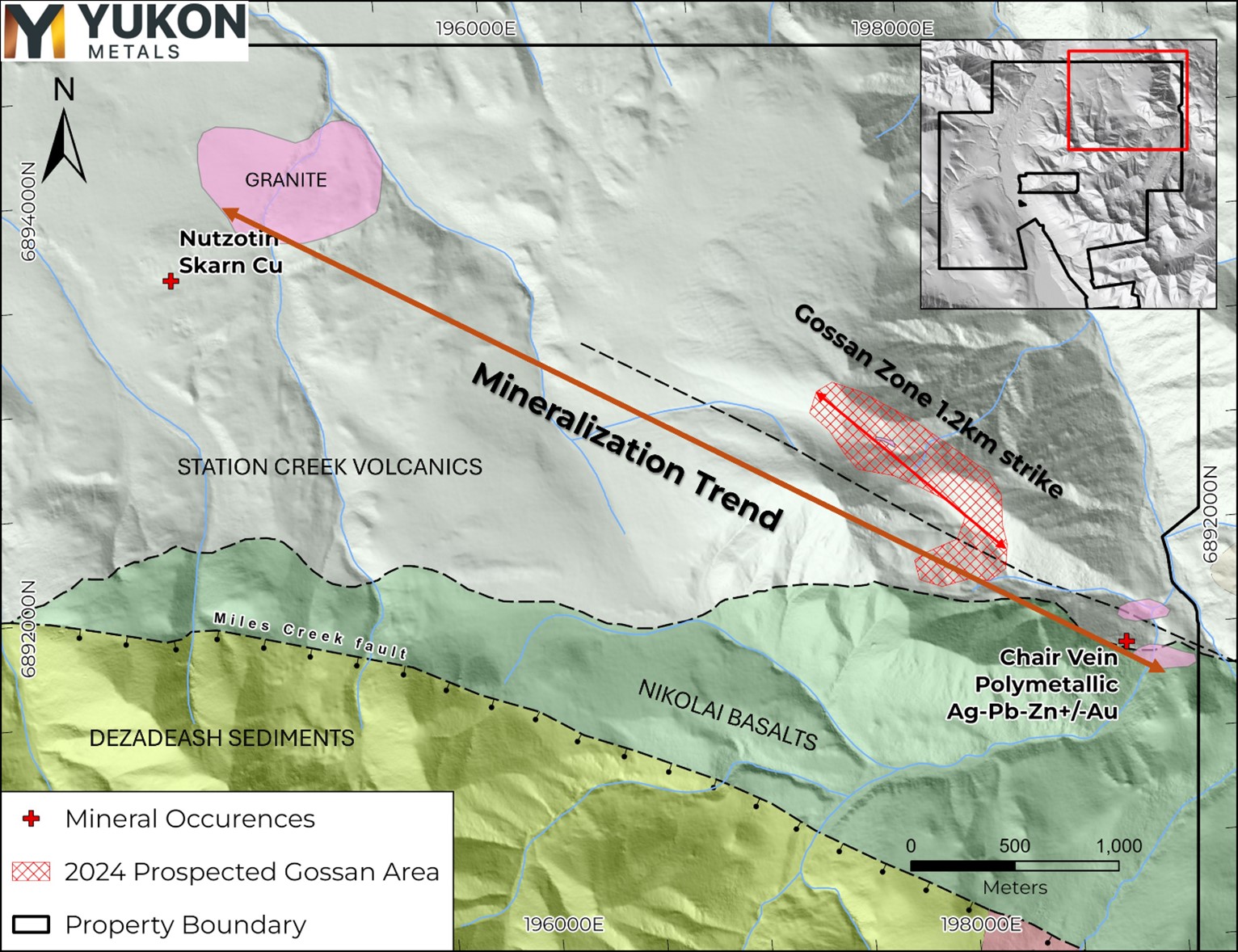 Rory Quinn, President & CEO stated, “The surface copper anomalies, oxidation, alteration, and proximity to a regionally mapped structure make the 5km-long Chair to Nutzotin trend a highly attractive exploration target. The systematic approach – integrating historical data, modern geophysics and targeted drilling – will allow Yukon Metals to refine its exploration model and unlock further potential at the AZ project.”