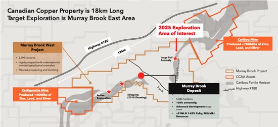 The purpose and use for this proposed funding are to advance the Murray Brook East Project which is located between the Murray Brook deposit and the Caribou Complex (Figure A). The program will start in Q2 2025 and include prospecting, trenching and drilling activity. Murray Brook East has a minimum spend requirement of ~$140,000 per year to maintain its good standing status. Our budgeted figure of ~$500,000 will satisfy carry over holding expenses because of Canadian Copper’s transaction with Votorantim Metals Canada.