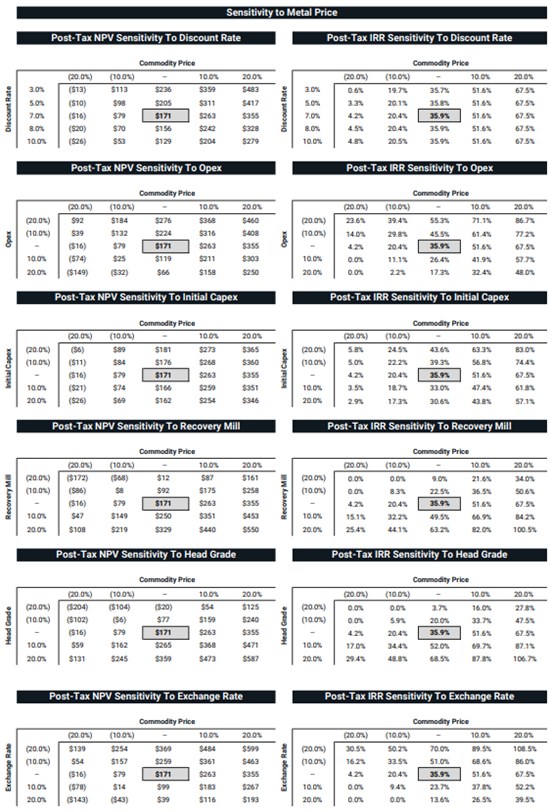 - After-tax base case NPV7% of C$171 M, IRR of 36%, and payback of 2 years using US$4.25/lb copper, US$1.30/lb zinc, US$27/oz silver, and US$1.10/lb lead price assumptions (pre-tax NPV7% of C$264 M and IRR of 49%).