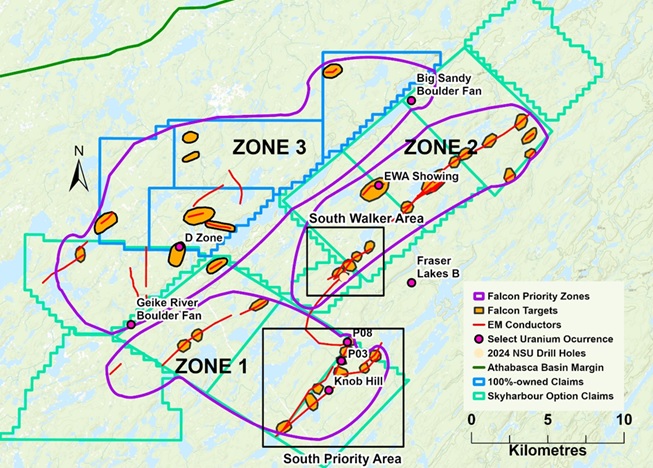 In its September 17, 2024, October 10, 2024, November 13, 2024, February 27, 2025 and May 6, 2025 news releases, the Company summarized work being done at the West Bear and Falcon properties with emphasis on Falcon. Three priority areas have been established at Falcon, Zones 1, 2 and 3 and 36 uranium targets within the three zones have been selected to date by North Shore and its consultants (Figure 1).