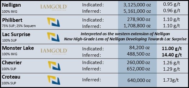3 “lAMGOLD Announces Significant Increase in Nelligan Ounces & Update of Global Mineral Reserves and Resources”; IAMGOLD reports increase in mineral reserves and resources at existing assets, with increase in resources at Gosselin; IAMGOLD Corporation News Release dated February 15, 2024, October 23, 2024, and February 20, 2025. Note that the technical and scientific information disclosed from neighboring properties does not apply to any other properties of the area.