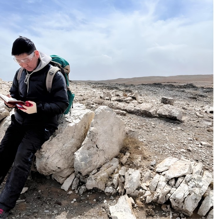 Figure 2. Grand Samsara’s Geologist on top of HPQ Quartz Vein at Tsagaan Zalaa.