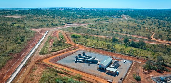 Looking south: The two existing shaft locations where the “Stage Two” dewatering surface pumping infrastructure will be installed to dewater the eastern side of the Kakula Mine. Water will be discharged into existing surface water channels (right of picture).