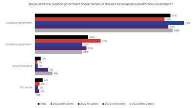 - 67% of voters would prefer a coalition government, to 26% who would prefer for the MPP to govern alone.