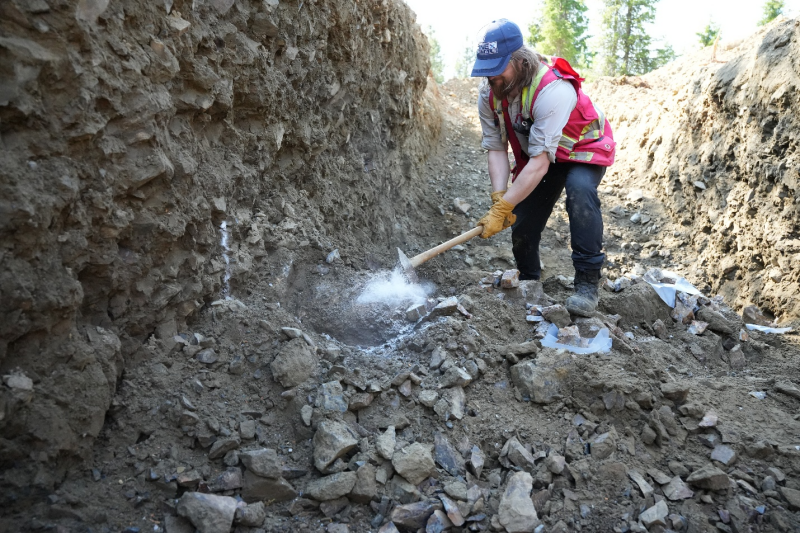 Mechanical trenching was undertaken to expose bedrock for structural mapping and sampling.