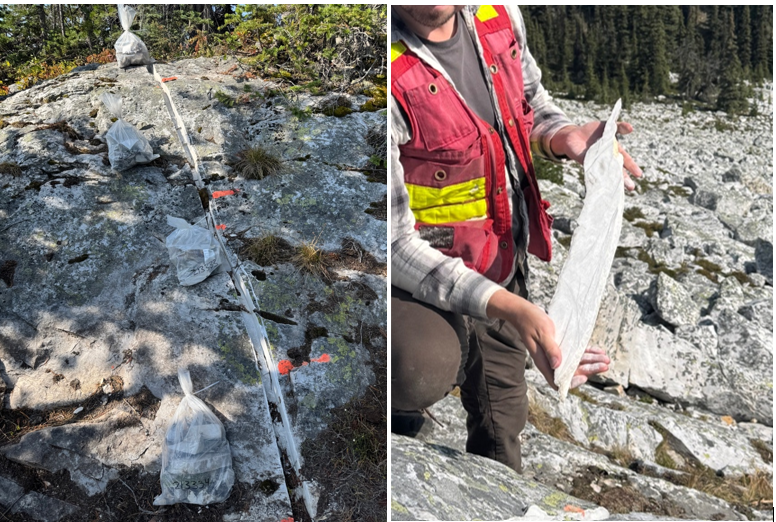 Two bulk samples, totalling approximately 250 kilograms, were collected from the main quartzite zone. These samples will undergo metallurgical testing to evaluate silica quality, identify impurities, and potential suitability for high-end applications.