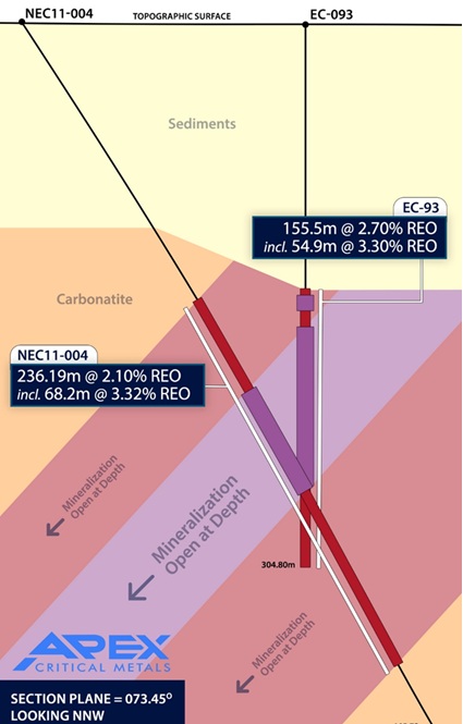 155.5 metres (“m”) of 2.70% TREO[1],Including 54.9 m at 3.30% TREO (EC-93).