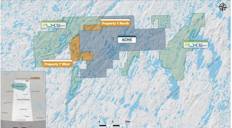 The Y Lithium Project is located in a remote and underexplored region near Bailey Lake, approximately 160 kilometers northeast of Stony Rapids and 10 kilometers south of the Saskatchewan/Northwest Territories border. The project comprises four mineral claims across two distinct blocks, covering a total area of approximately 5,856 hectares. It forms a core part of Battery X Metals’ 2025 exploration strategy targeting high-potential lithium-bearing systems in strategic jurisdictions across Canada.