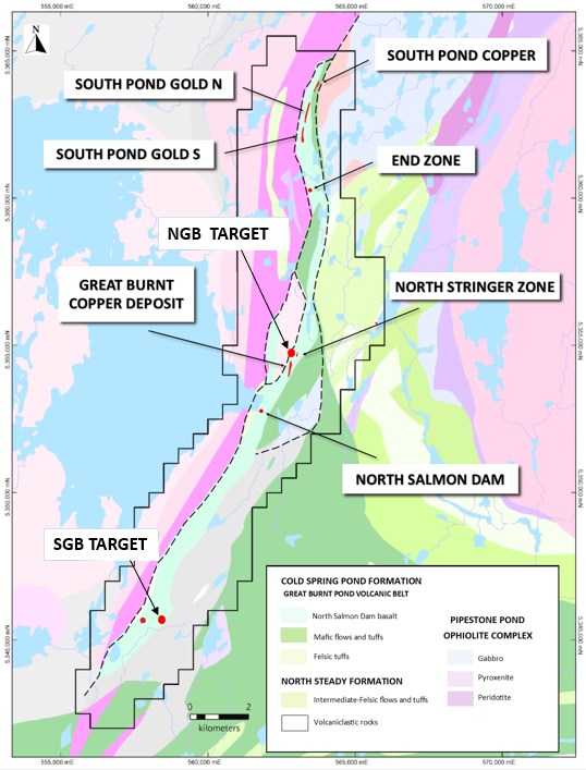 Stephen Stares, Company President and CEO, stated, “We are confident that the Great Burnt and South Pond deposits will continue to deliver excellent results as we move them forward. Being in the industry and having drilled hundreds of drill holes on various projects, the Great Burnt Project is truly a rare gem. These are once-in-a-lifetime projects, where you can get continuous mineralization over such a large area. We now have high-grade copper systems and at least a 2.7 km-long gold-copper system on the same property. We are really excited to continue unlocking the Great Burnt Project’s true potential.”