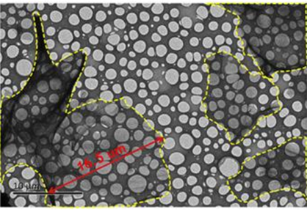 Figure 1, TEM Imaging of reduced Graphene Oxide Performed at University of Waterloo (spots in background are substrate)