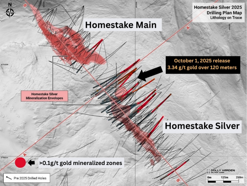“These gold results from a step-out hole at the Homestake Silver Deposit confirm that the deposit continues to grow beyond the current mineral resource estimate,” stated Shawn Khunkhun, CEO of Dolly Varden Silver in the October 1, 2025 press release.