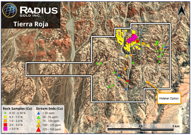 October 2, 2025 – TheNewswire – Vancouver, Canada – Radius Gold Inc. (TSXV: RDU) (“Radius” or the “Company”) is pleased to announce that it has signed a Mining Assignment and Option Agreement to acquire the 1,800-hectare Hidekel concessions directly adjoining its 100%-owned Tierra Roja copper project in southern Peru (see press release Feb 28, 2025). The remaining concessions under review have been released. The signing of this Mining Assignment and Option Agreement consolidates Radius’s land position at Tierra Roja and strengthens the Company’s control over one of the most compelling copper exploration targets in the district.