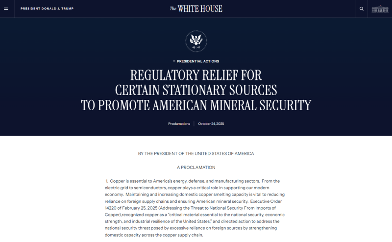 The White House emphasized that the proclamation is aimed at bolstering American mineral security and reducing reliance on foreign processing, particularly by avoiding near-term disruptions at named U.S. smelters while maintaining environmental oversight. Independent reporting identifies at least one U.S. primary copper smelter among the facilities receiving relief.2