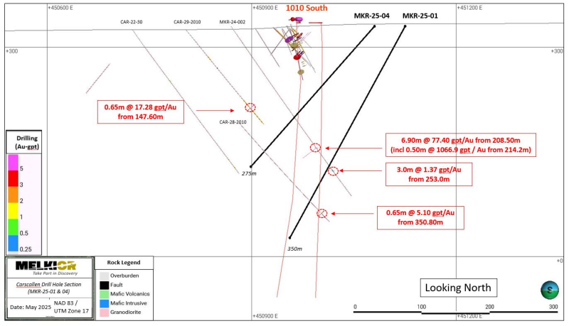 Melkior Announces Follow-Up Drilling on the Bonanza Gold Intersection at 1010 Zone with 77.40 g/t gold over 6.90 meters at the Carscallen Gold Property
