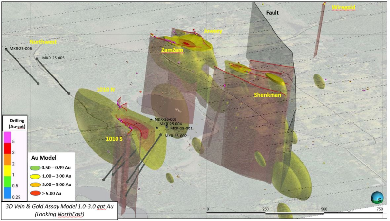 Follow-up drilling on the discovery of a significant bonanza gold intercept extending the 1010 zone at depth, from hole MKR-24-002, which intersected 77.4 g/t gold over 6.90 meters, including 445 g/t gold over 1.20 meters at the 1010 South (Table 1, Figures 2-5).