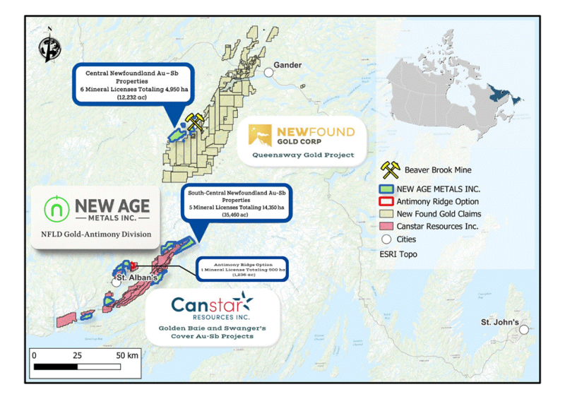 NAM’s Antimony-Gold division is in Newfoundland and spans over 19,800 hectares consisting of 11 non-contiguous properties. Six of these properties are in St. Alban’s area, along Canstar’s Swanger and Little River mineralized trends. The remaining 5 properties are strategically located along the same geological trend as the past-producing Beaver Brook Antimony Mine and in proximity to New Found Gold’s Queensway South Gold Project. Management has recently completed Phase 1 of the Project, Phase 2 has been initiated, and further news will follow. On July 30th, the Company was pleased to announce that it has received formal approval under Newfoundland and Labrador’s Junior Exploration Assistance (JEA) Program, including eligibility for the Critical Minerals Assistance (CMA) and Provincial Critical Mineral Assistance (PCMA) streams. The potential rebate total for eligible exploration activities is $71,975.