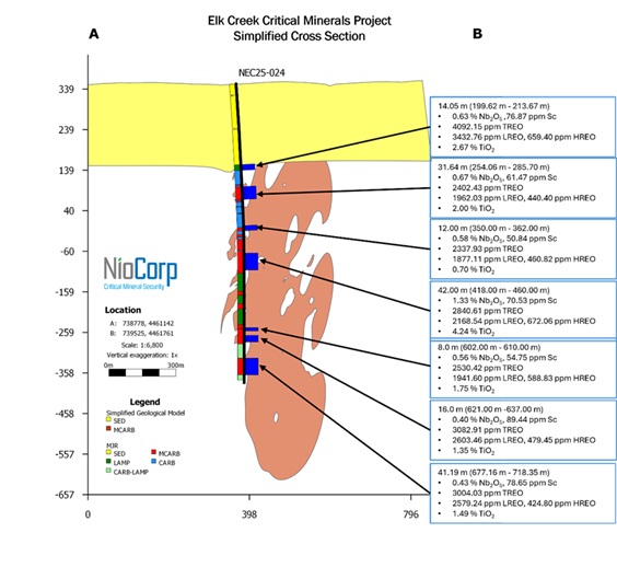 CENTENNIAL, CO / ACCESS Newswire / October 16, 2025 / NioCorp Developments Ltd. (“NioCorp” or the “Company“) (NASDAQ:NB), a leading U.S. critical minerals developer, is pleased to report assay results from the first completed diamond drill hole from its drilling program at its critical minerals project in Southeast Nebraska (the “Elk Creek Project“).