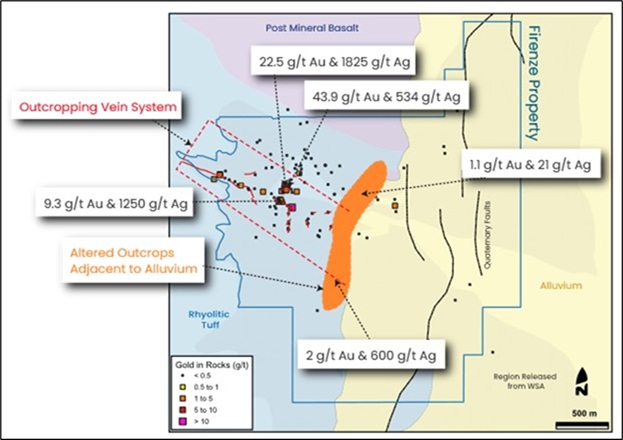 The 740-hectare Firenze property is located in central Nevada, 170 kilometres east of Reno (Figure 1). The claims are located on road accessible BLM-managed ground with no conservation designation.