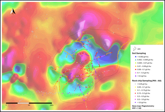 The Company subsequently began a large-scale soil geochemical survey in May 2025, planned to cover most of what was thought to be the extent of the porphyry system. Soil samples were taken at roughly 25m intervals, along ridges and spurs for ease of access and to ensure soils were residual.