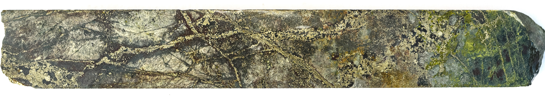 Chalcopyrite, most pronounced in the darker, finer-grained QMD phases, was localized to quartz sulphide veins and vein halo dissemination. Importantly for our geologic model, post-logging core review identified early quartz-actinolite-pyrite-epidote veins carrying chalcopyrite and including replacement of mafic grains into the vein halos (0.5-1 cm scale). These textures indicate a sustained hypogene fluid system and anchor the potassic corridor trending west from S-056.