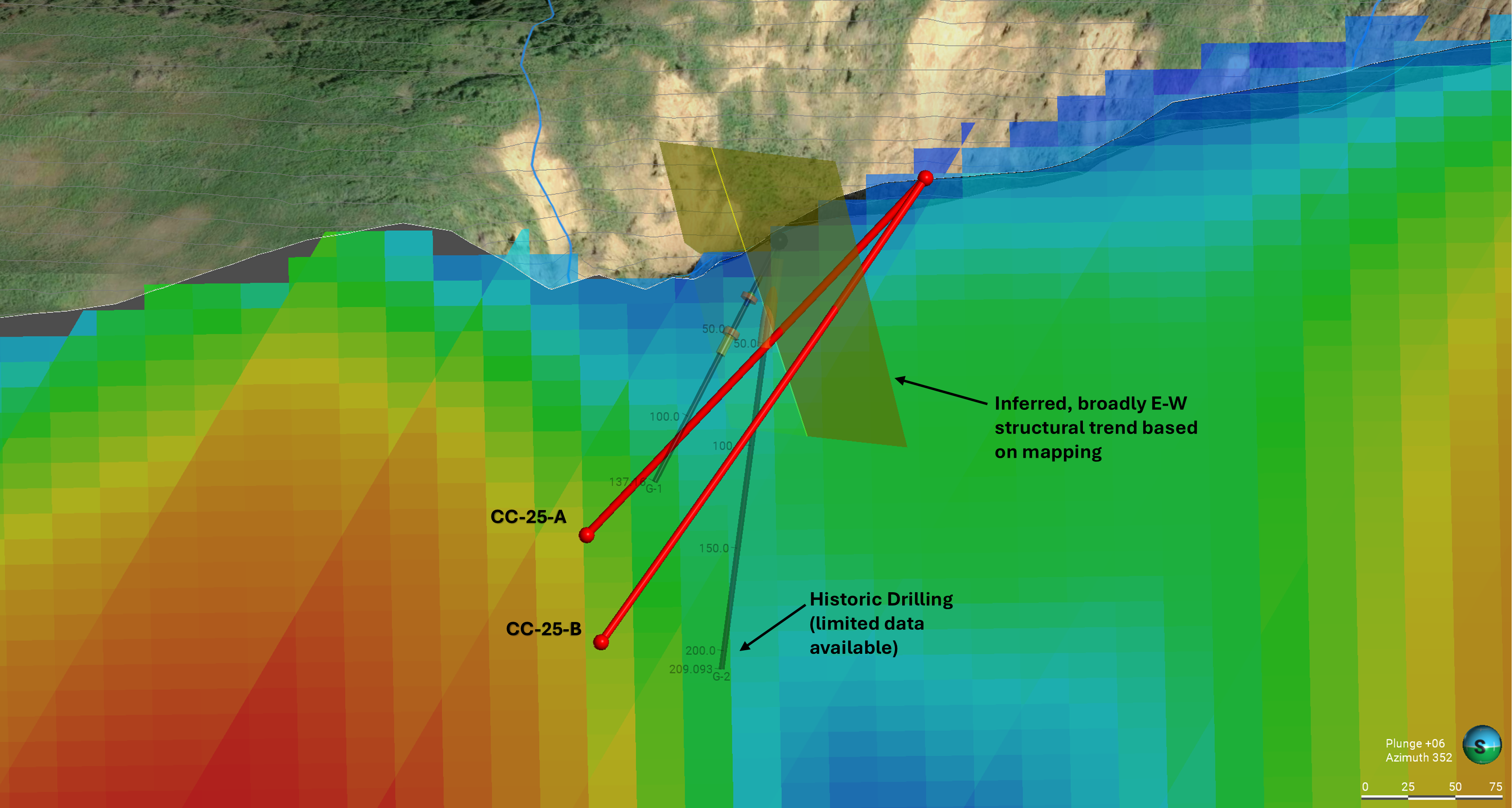This initial program is intended to validate the structural-geochemical model at Copper Creek and provide vectors for follow-up step-outs. Drilling updates will be provided as the program advances and once assays are received and reviewed under the Company’s QA/QC procedures.