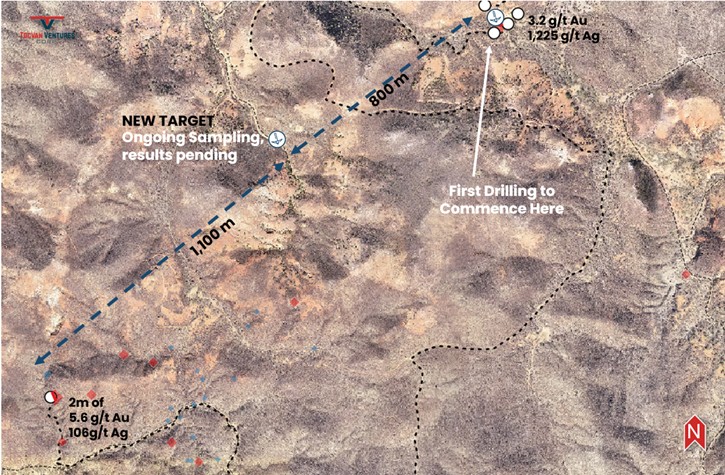 Figure 1. Map of North Alteration Zone with key target areas within alteration footprint. Drilling will commence on the northern most target. Mapping and sampling in the central location is ongoing, with results pending.