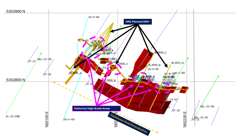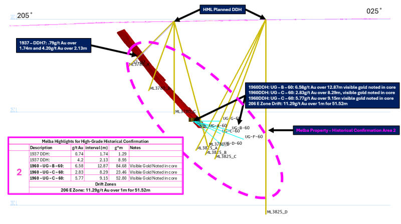Diamond Drilling Q4 2025/Q1 2026 designed to confirm multiple high-grade historical results (Figure 1, 3-6), 26 Diamond Drill holes totalling ~1,780m: