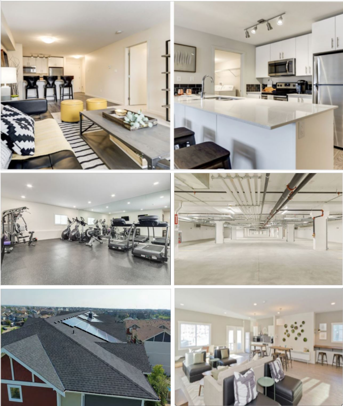 The Property is comprised of fifty-one (51) one-bedroom with one-bathroom suites, ninety-seven (97) two-bedroom with one-bathroom suites, and thirty-six (36) two-bedroom with two-bathroom suites. The average suite size is 803 square feet and the total net rentable space is 147,826 square feet. Each suite is of condominium-quality and features an open-concept design, quartz countertops, stainless steel appliances, walk-in closets, and in-suite laundry. Each of the three apartment buildings features underground parking, with a total of one hundred and twenty-eight (128) underground stalls, in addition to one hundred and fifty (150) surface parking stalls. Additional amenities include a modern tenant lounge, energy-efficient solar panels, a fully equipped fitness centre, a community garden and a pet run.