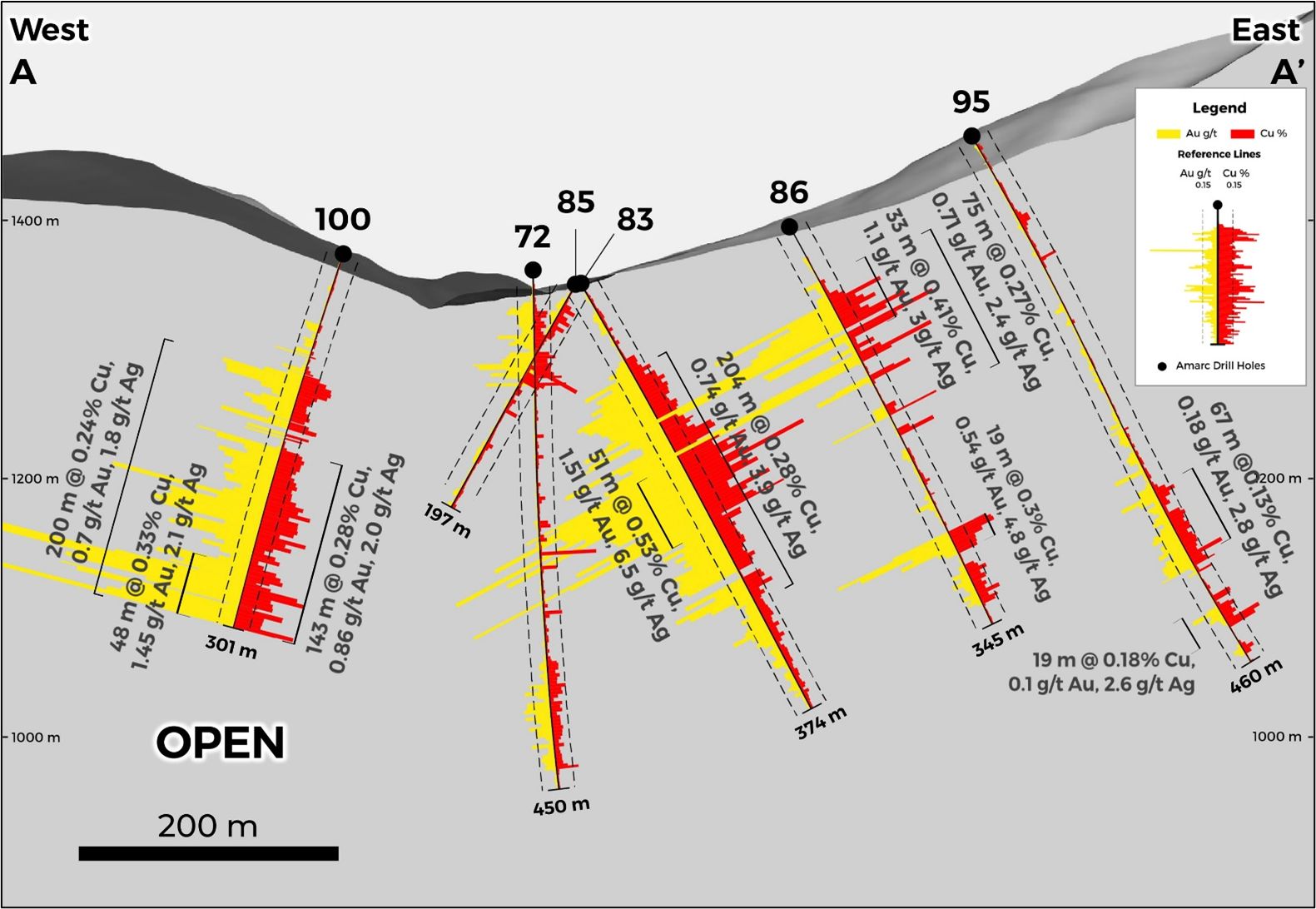 143 m of 0.86 g/t Au, 0.28% Cu and 2.0 g/t Ag -