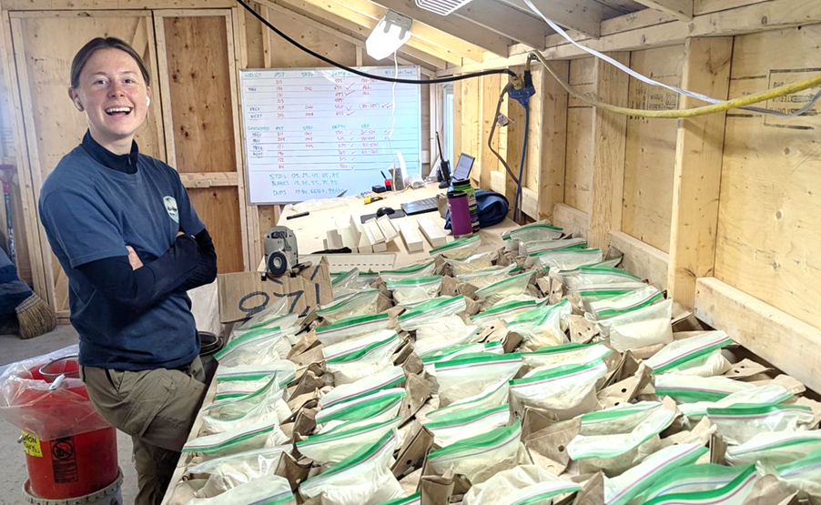 Figure 1: Sample preparation onsite at the Storm Camp, Storm Project, Nunavut.