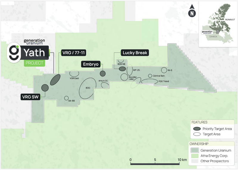 Vancouver, British Columbia – TheNewswire – November 3, 2025 – Generation Uranium Inc. (TSXV:GEN, OTCQB: GENRF, FRA:W85) (“Generation” or the “Company”) reports new geological insights confirming the VGR Trend as one of the most prospective targets for high grade, unconformity style uranium mineralization outside the Athabasca Basin. Located within the Yathkyed sub-basin on the Company’s wholly owned Yath Property, the VGR Trend is one of seventeen priority targets defined through Generation’s comprehensive reinterpretation of historical data.