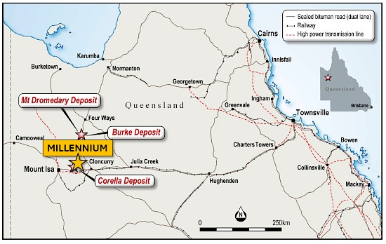 Millennium is an important critical minerals project in a readily accessible mining area near Cloncurry, Queensland, located due south of Harmony’s recently approved A$2.6b Eva copper-gold development project and the proximal to Austral’s Rocklands Cu project which is currently planned for restarting operations in mid 2027.”
