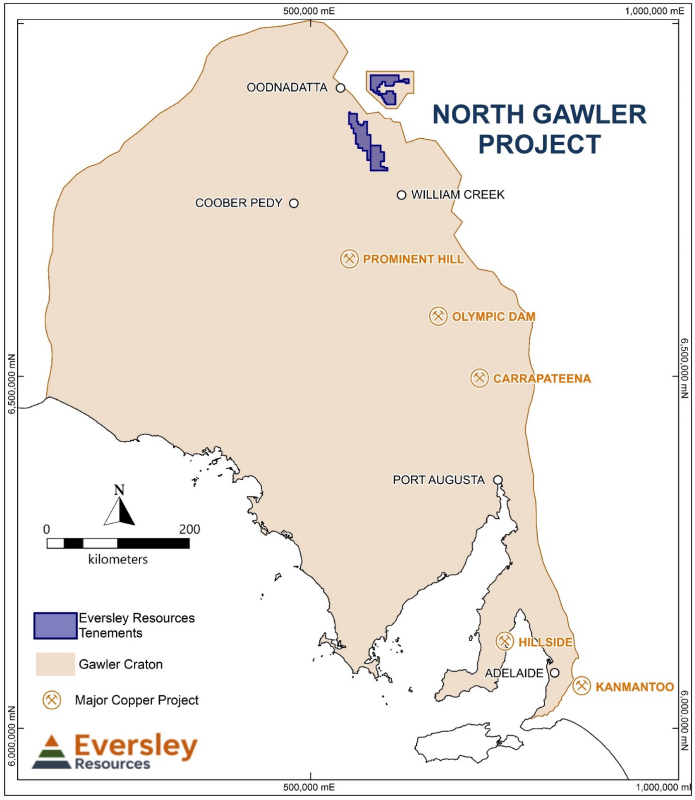 Figure 1. Map showing location of Eversley’s North Gawler Project exploration tenements in South Australia.