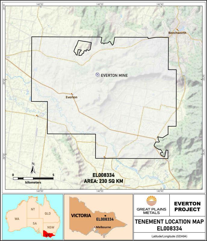 Figure 1. Map showing location of the Everton Project EL00834 in Victoria Australia